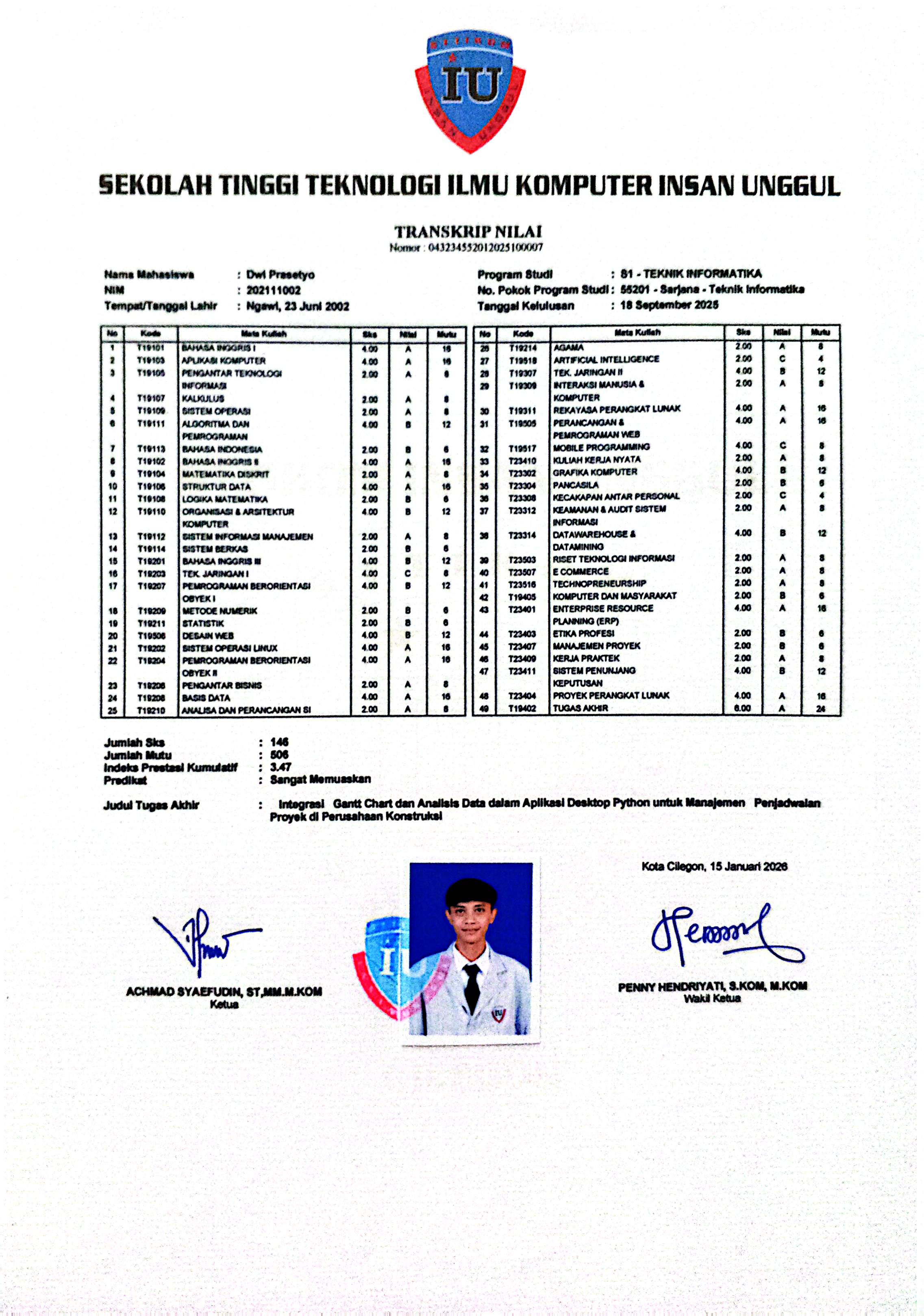 Sekolah Tinggi Teknologi Ilmu Komputer Insan Unggul Cilegon(string[] _Degree)